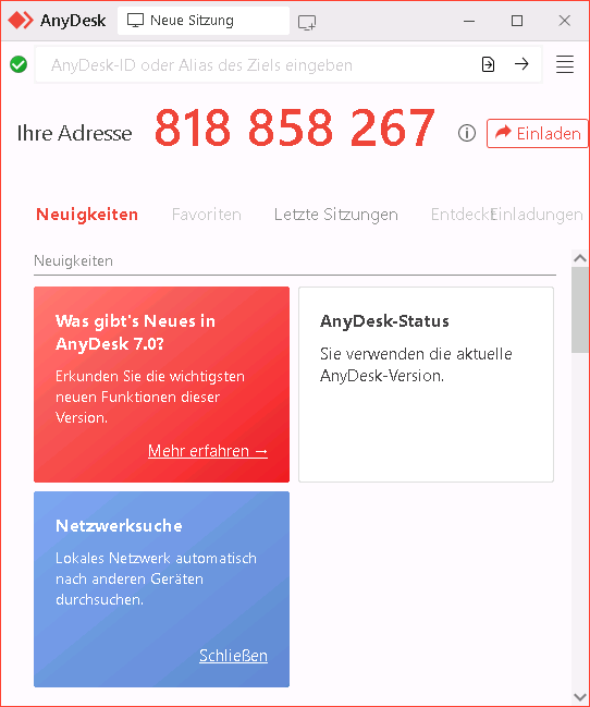 Geben Sie uns an, was Anydesk rechts neben «Ihre Adresse» anzeigt.