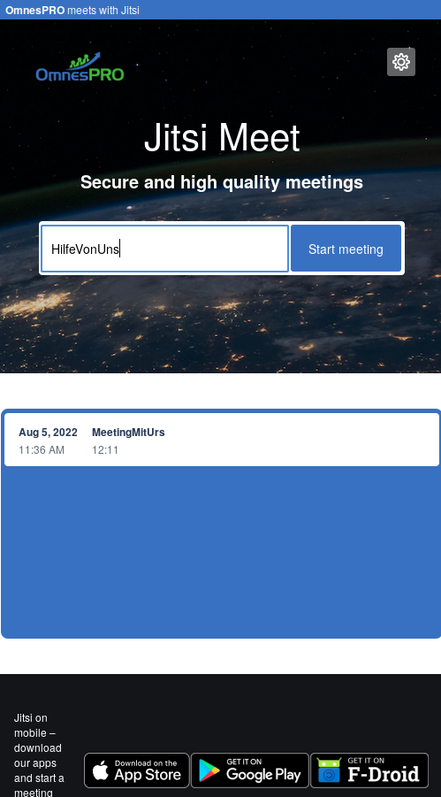 Öffnen Sie bitte in Ihrem Webbrowser unsere Konferenz-Webseite unter fuertreffen.ch. Geben Sie dort den Meeting-Namen ein, den wir Ihnen angegeben haben und drücken auf den Startknopf.